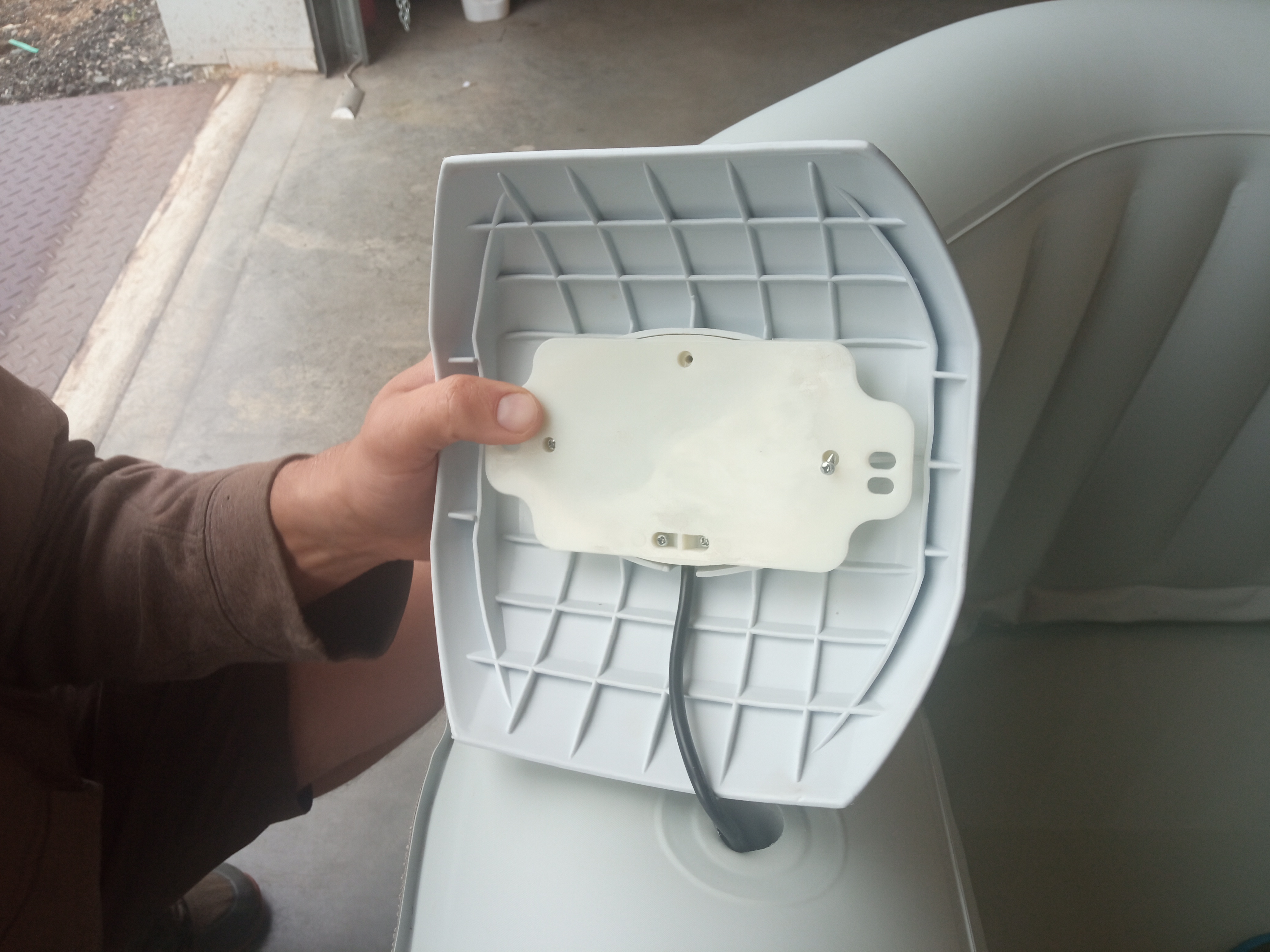 - Otočíte povolený PVC golier s vloženým ovládacím panelom. Odmontujte malé skrutky z bieleho krytu panela a rozpojte zospodu čierny konektor. Bude zaliaty originálne v silikóne. Ten budete musieť odstrániť pred rozpojením.