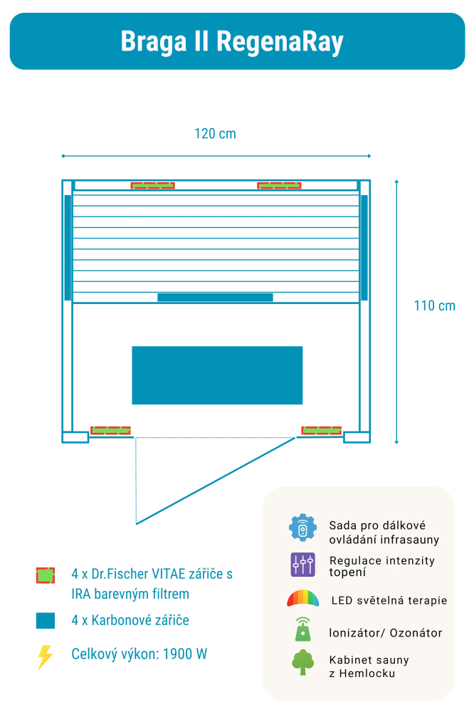Infrasauna Braga 2 RegenaRay obsahuje: