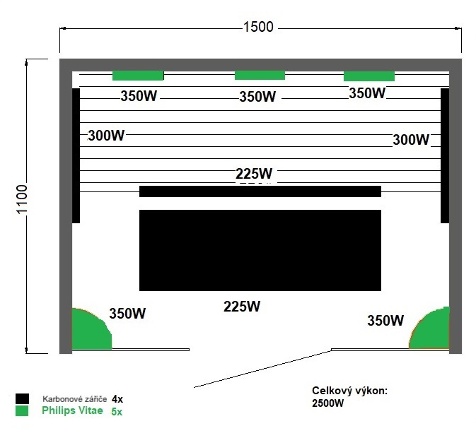 Popis montáže infrasauny a pôdorys s dispozíciou infražiaričov