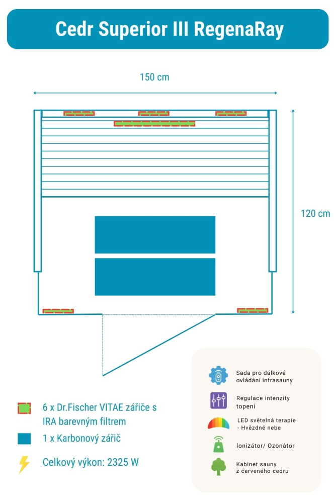 Infrasauna Ceder Superior 3 RegenaRay obsahuje: