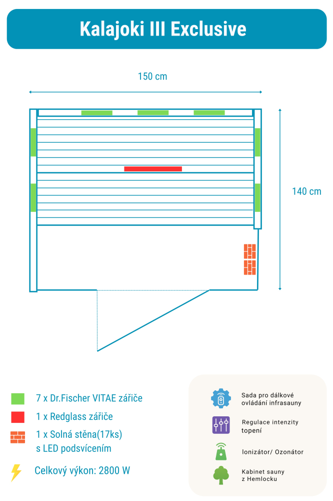 Infrasauna Kalajoki 3 Lux obsahuje: