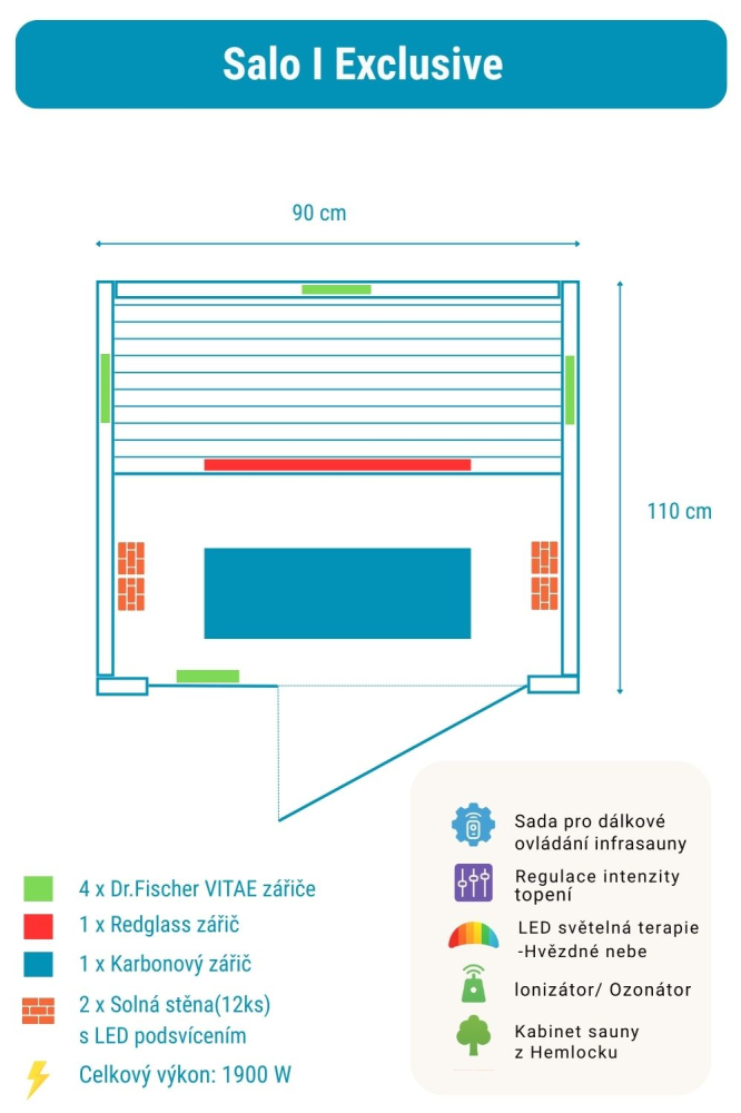 Infrasauna Salo 1 Exclusive obsahuje: