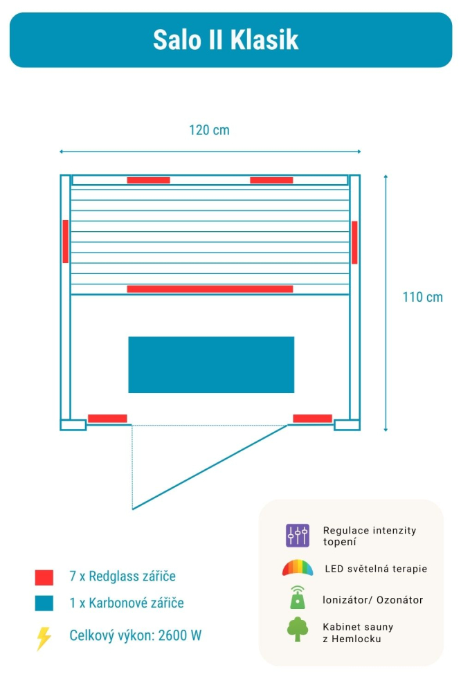 Vďaka kompaktným rozmerom je infrasauna vhodná aj do menších bytov, domov či wellness prevádzok.