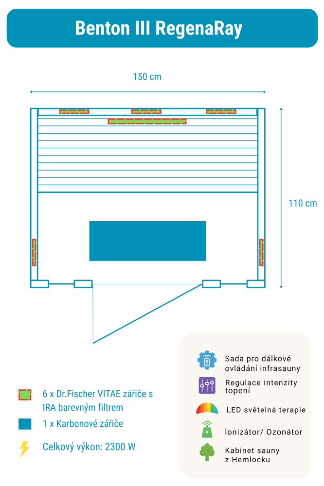 Infrasauna Benton 3 RegenaRay obsahuje: