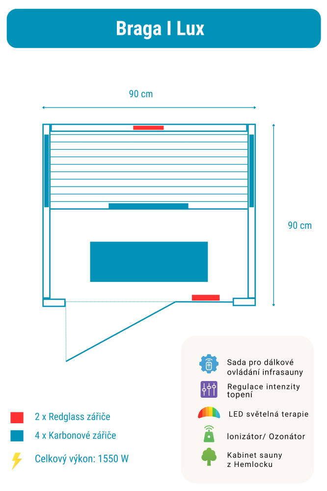* Fotografie mají ilustrační charakter. Počet zářičů odpovídá půdorysu konkrétní infrasauny.