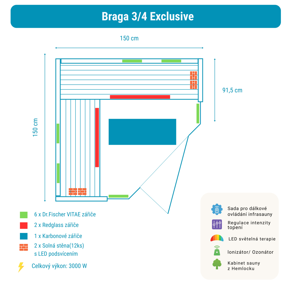 Infrasauna Braga 3/4 Exclusive obsahuje: