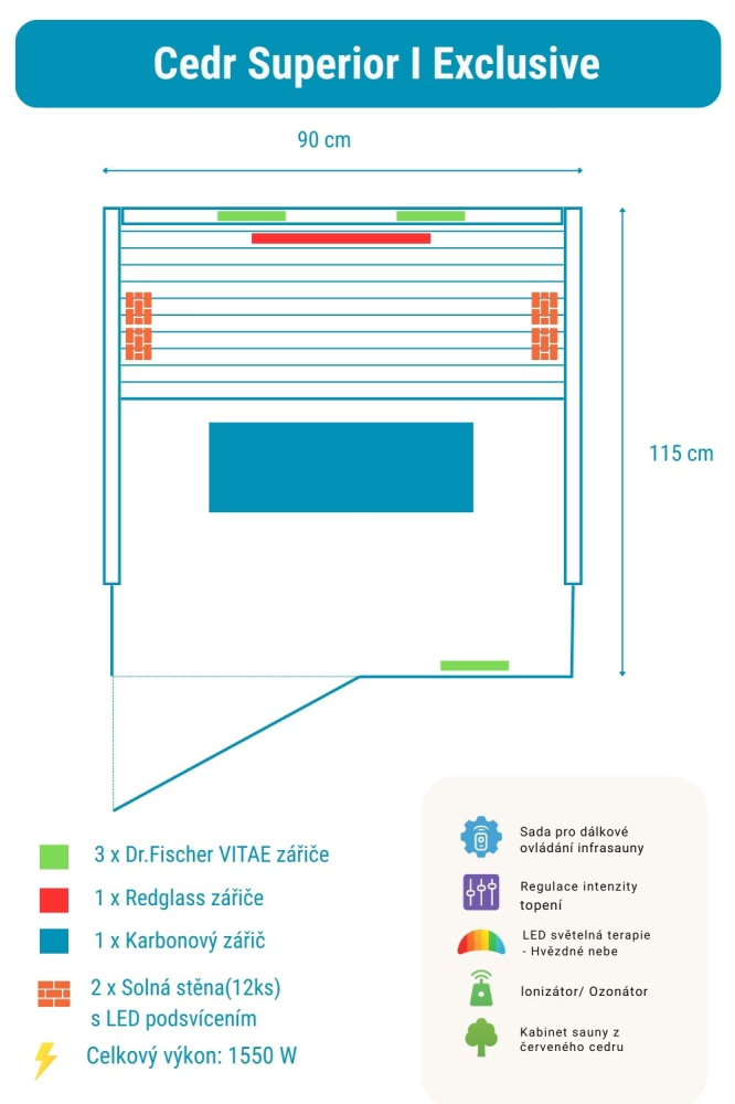 Infrasauna Céder Superior I Exclusive obsahuje: