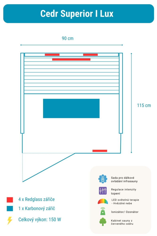 Infrasauna Céder Superior 1 Lux obsahuje: