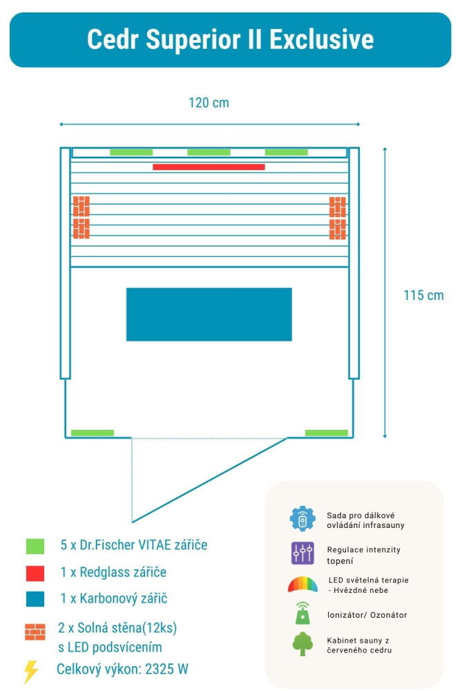 Infrasauna Céder Superior 2 Exclusive obsahuje: