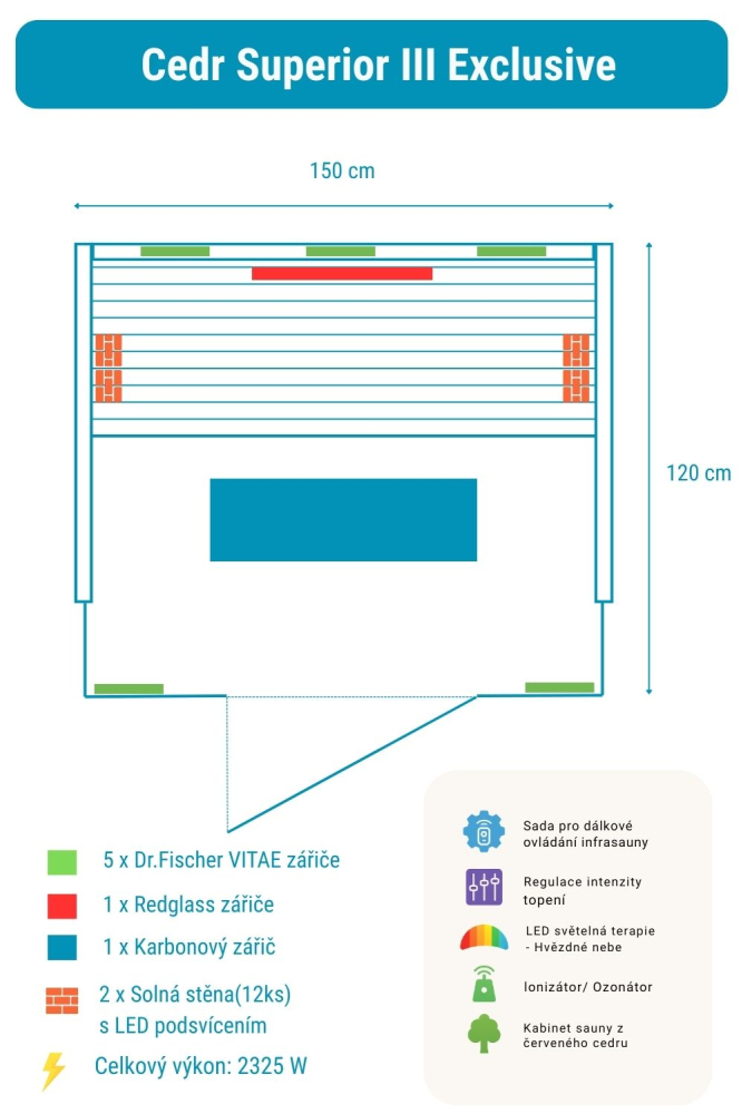 Infrasauna Céder Superior 3 Exclusive obsahuje: