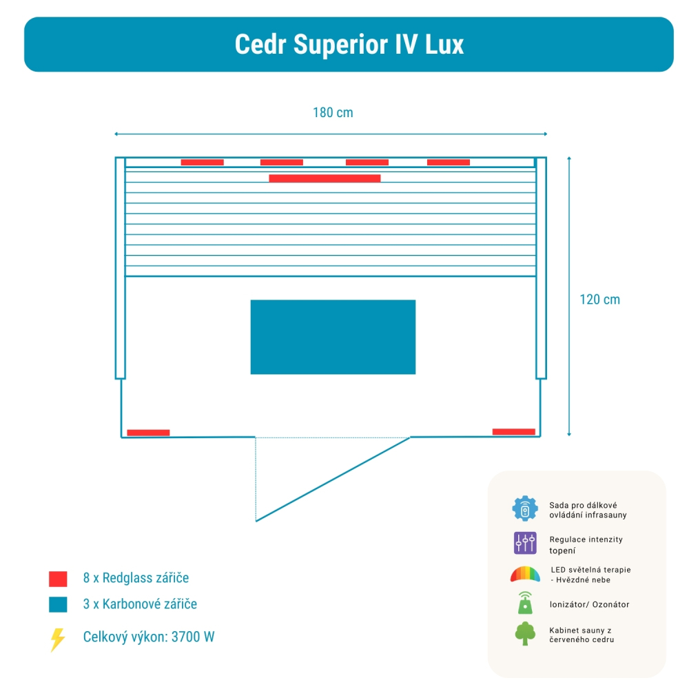 Infrasauna Céder Superior 4 Lux obsahuje: