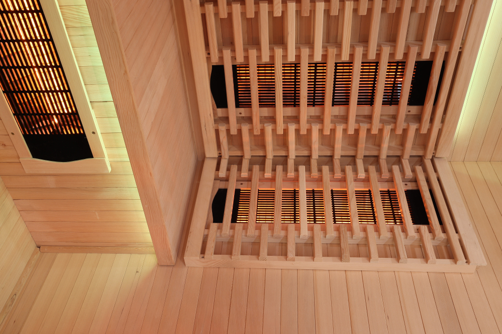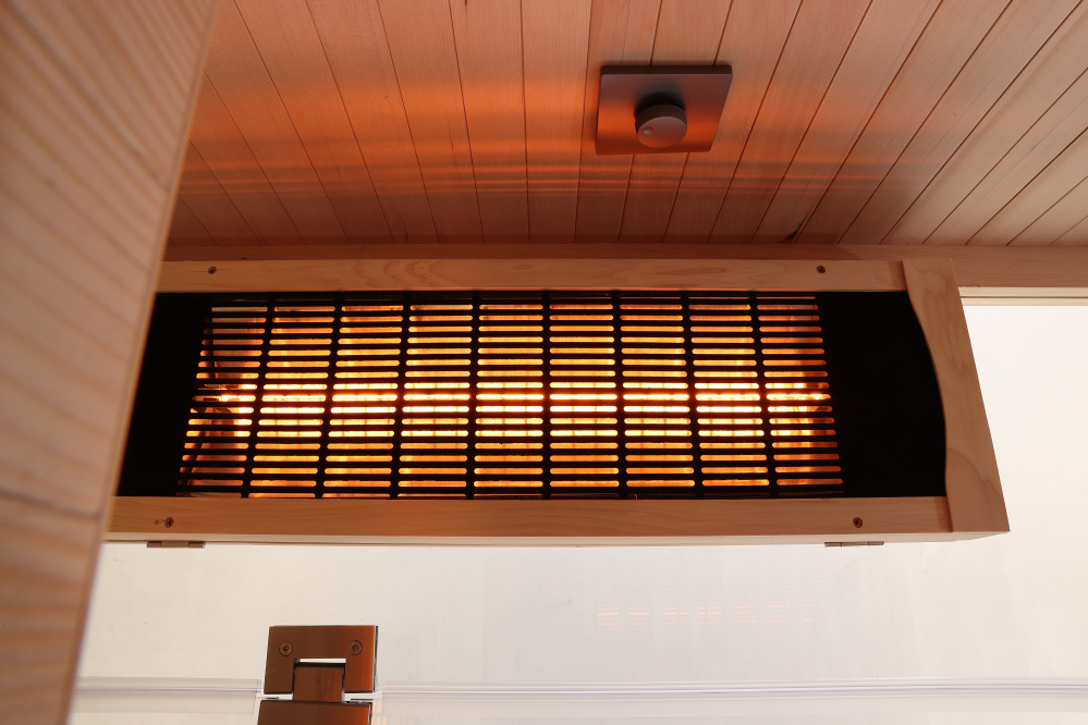 Štandardné žiariče z výroby: Infrasauna je osadená plnespektrálnymi žiaričmi RedGlass Dark . V druhom kroku objednávky je možné za zvýhodnenú cenu zvoliť alternatívu Philips Vitae .