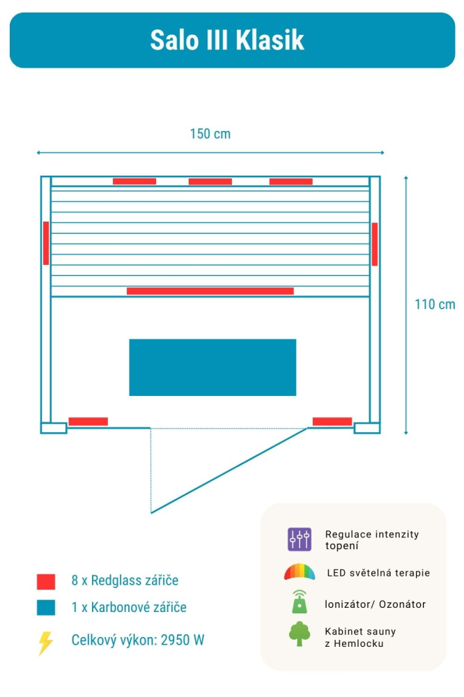 Infrasauna Salo 3 Klasik obsahuje: