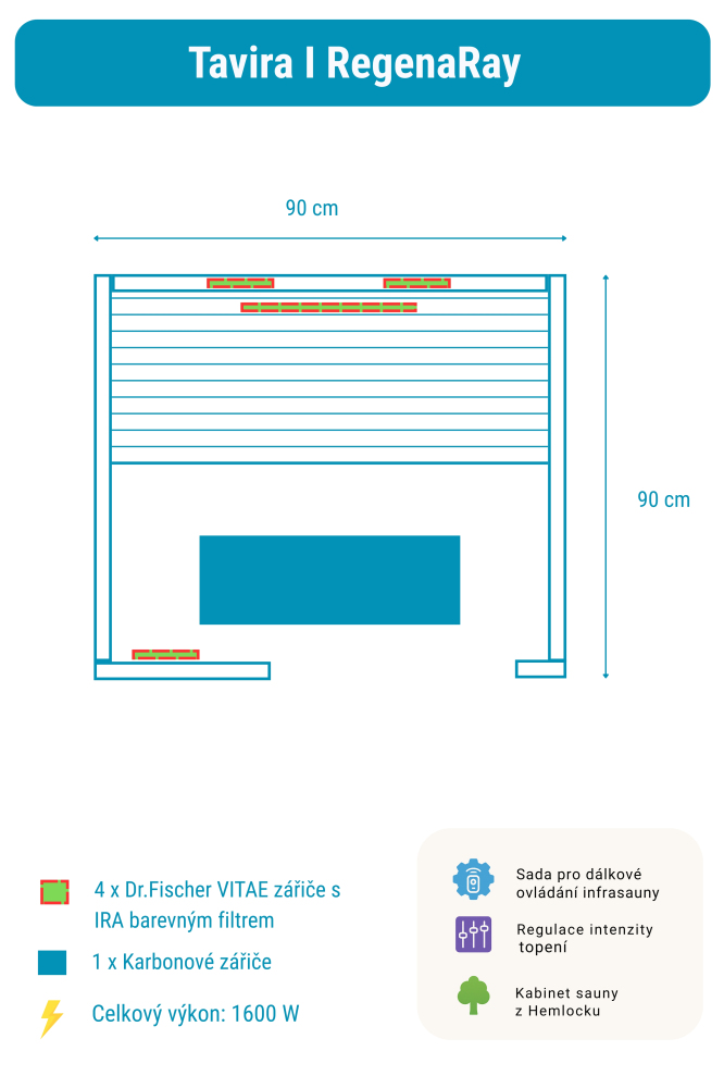 Infrasauna Tavira I RegenaRay obsahuje: