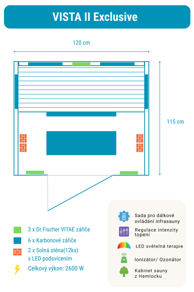 * Fotografie mají ilustrační charakter. Počet zářičů odpovídá půdorysu konkrétní infrasauny.