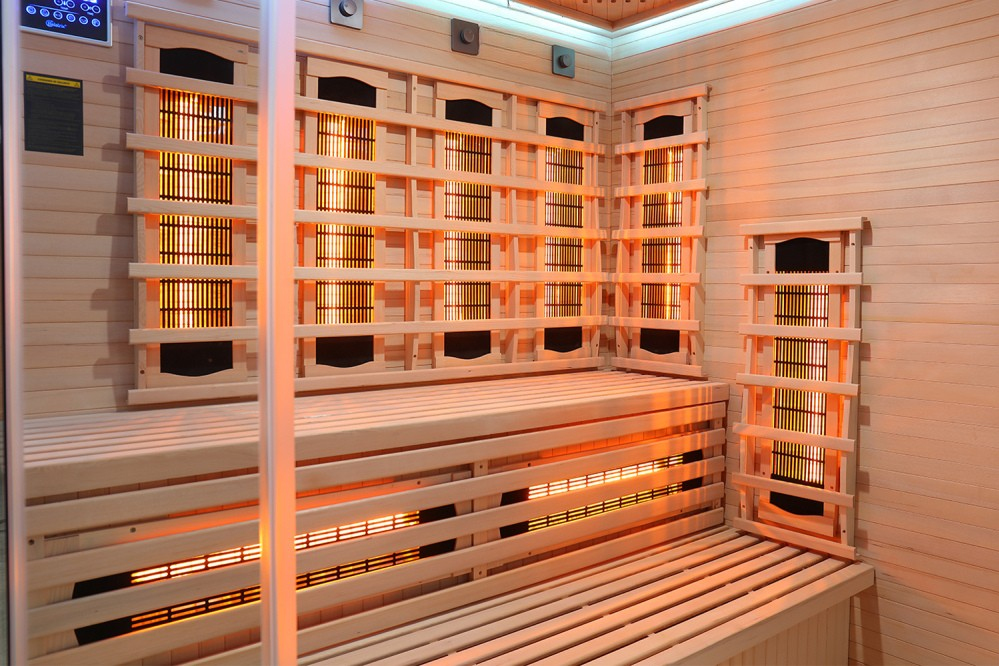 Štandardné žiariče z výroby: Infrasauna je osadená plnespektrálnymi žiaričmi RedGlass Dark . V druhom kroku objednávky je možné za zvýhodnenú cenu zvoliť alternatívu Philips Vitae .